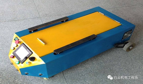 v 作品介紹:能在無人的情況下按照規(guī)定的磁導航路線行駛和搬運物料。通過制作,在鞏固學生所學知識的技能的同時,對學生走向工作崗位從事機電產品的制造、創(chuàng)新是極好的體驗。