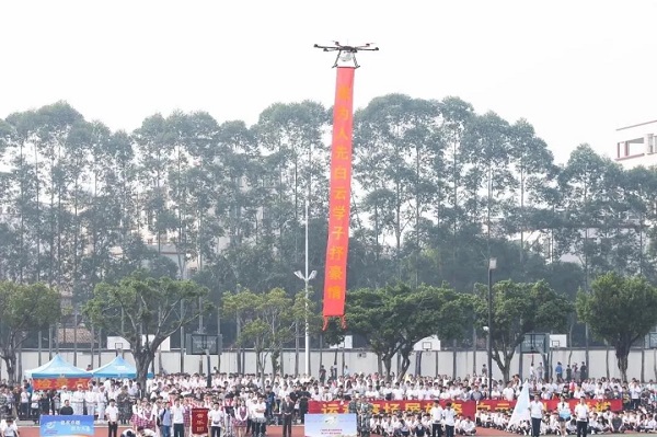 精彩的表演無疑是同學(xué)們在校運(yùn)會開幕式的最期待的環(huán)節(jié),而由機(jī)電系無人機(jī)協(xié)會帶來的無人機(jī)飛行表演沒有令同學(xué)們失望,從開場就牢牢抓住觀眾的眼球,帶來了震撼的空中無人機(jī)表演,在空中展現(xiàn)各種高難度動作,最后還搞個(gè)了“小驚喜”,一條鮮艷的橫幅,上面寫著“敢為人先白云學(xué)子抒豪情”,引得現(xiàn)場看臺上的同學(xué)們紛紛拿出手機(jī)、相機(jī),記錄下一幕幕精彩畫面,把現(xiàn)場氣氛推向高潮。