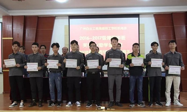 開班典禮上,博西家用電器集團對廖潤鋒、藍茲澤、王豪進、李健龍等15名2016級和2017級“博西華”冠名班的優(yōu)秀學子進行表彰并為他們頒發(fā)了企業(yè)獎助學金。博西華電器培訓中心經理紀秀青、廣州市白云工商技師學院副院長喬本新等領導以及相關部門的主要負責人、2018級“博西華”冠名班學子和機電系部分學生代表,共同見證了這一隆重時刻.